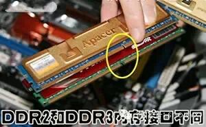 内存的重要性想必大家有所听闻。事实上内存插槽也是集成在主板上,而且与各种内存之间也有一一对应的关系。目前的主流内存主要是DDR2内存,不过现在处于更新换代的时期,部分高端主板同时提供了DDR2和DDR3两种内存插槽,不过我们可以通过识别内存插槽上的缺口来加以识别,通过图片大家可以看到,DDR3和DDR2内存接口上的缺口长短是完全不一样的(图)。