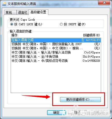3、点击更改按键顺序,选择右边的【Ctrl+Shift】,即可。