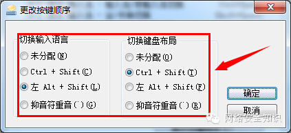 3、在这里我们选择右边的【Ctrl+Shift】,最后确定即可。