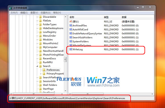 说到这里,你一定想知道 Win7 的搜索究竟又有多快,微软有没有提供某种方法来记录或查看Windows 搜索所花的时间?这个问题当然难不倒Win7,谁叫它有与生俱来的优势呢,哈哈。只要在注册表中添加一个注册表键值,Windows 就会将每一次搜索的相关数据记录下来哦。