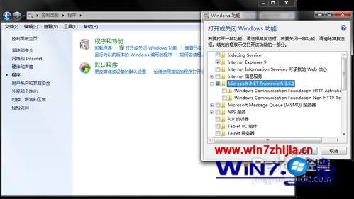 1、打开“控制面板”--“程序”--“打开或关闭windows功能”;