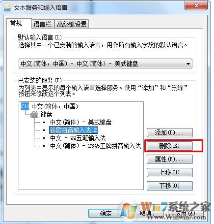1、这是由于您要删除的输入法已经被配置为开机默认输入法导致的,先在上面选择另一个默认输入法。