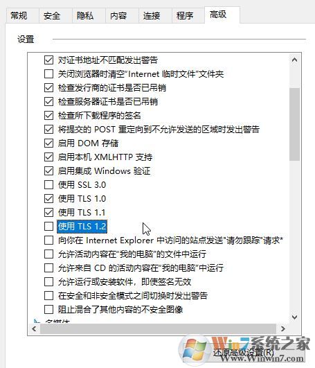 3、在高级下面找到【使用 TLs 1.2】选项,将该选项的勾去掉,点击确定保存配置即可!