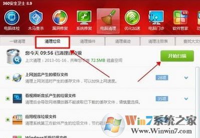 3、此时你们点击“清理垃圾”选项卡,点击“开始扫描”按钮;