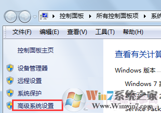 1、鼠标右击电脑桌面的“计算机”图标,选择“属性”选项,在打开的属性窗口中,点击左侧窗口中的“高级系统配置”选项;