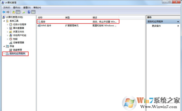2、在打开的计算机管理界面,找到并打开“服务和应用程序”下的服务项。