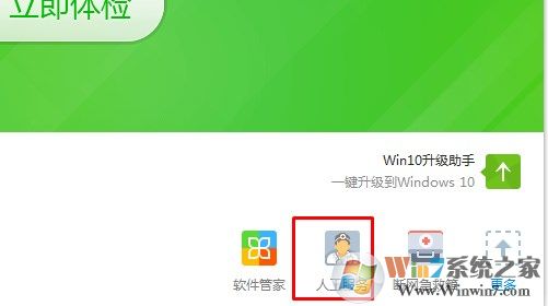 6、电脑如果安装有360安全卫士,打开,然后点击人工服务。