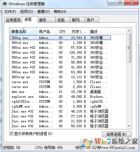 2、任务管理器界面,点击进程打开,然后你们选择占用CpU非常高的进程,然后关上进程,这样可以降低CpU的使用率,这里每个进程都有全部的教程,将一些自己确定不使用但是还非常占用CpU进程关上,这里一些系统进程不要关上比如,sVCHosT.ExE进程。所以像主编上面说的一样,自己如果看不懂是什么进程,一定要上网搜索一下这个进程是否可以关上,这样可以因为结速系统进程而导致系统瘫痪