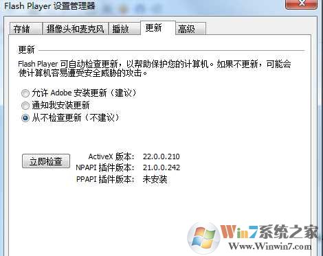 当然这样做可能无法享受到最新的Adobe Flash player版本体验,所以大家还是手动下载目新较新的版本,安装后基本几个月也不需要升级了。