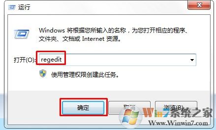 2.点击屏幕左下角的“开始”按钮,在文本框中输入“regedit”进入,按enter键进入注册表,
