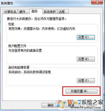3、在高级页面下,你们点击下面红圈选中的按钮;(环境变量)