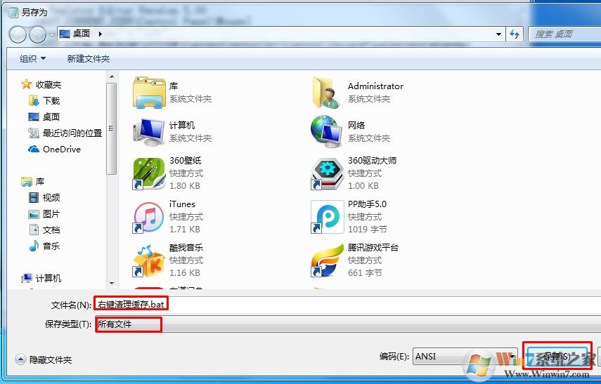 完成之后,点击窗口上方的文件-另存为,然后将该文件另存为 清理右键缓存.reg,选折文件格式为所有。并保存到桌面