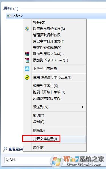 1、在搜索中输入这个程序的名字“igfxhk ”